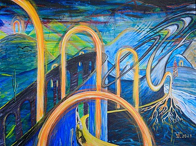 Brücken ins UniversumAcryl auf Leinwand 60x100 cm, 2019